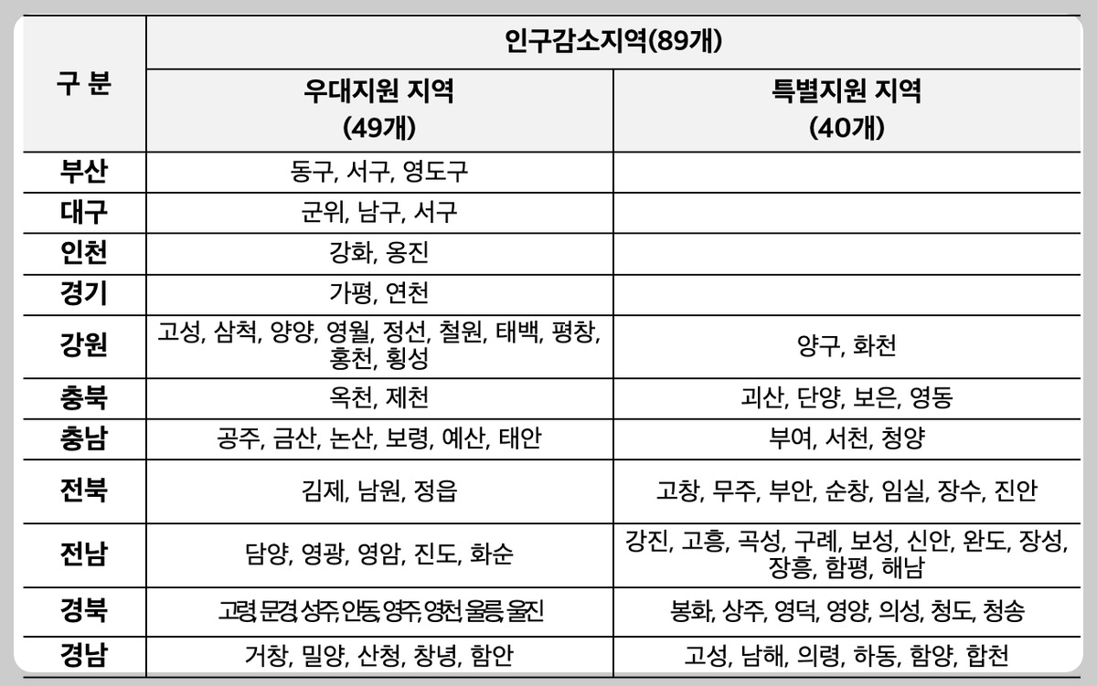 | 인구감소지역 우대지원지역 |