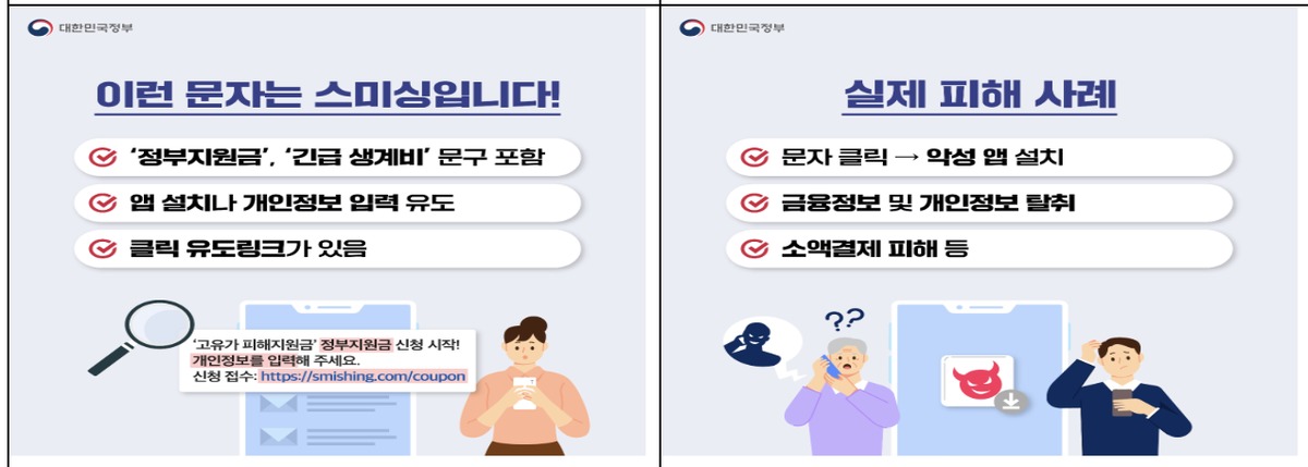 🚨 스미싱 주의! — 정부는 URL 문자를 보내지 않아요