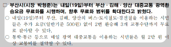 “야, 이제 부산 환승 무료래!” 하고요. 아마 듣는 분들 모두 “헐, 진짜? 그럼 나도 알려줘야겠다” 하면서 공유하지 않을까요? 여러분도 꼭 주변 분들께 알려주세요. 오늘은 제가 전해드렸지만, 내일은 여러분이 누군가에게 전하는 기분 좋은 소식이 될 수 있습니다.